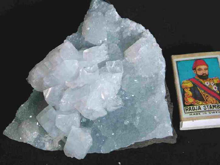 Sehr attraktive und ästhetische StufePerfekte Apophyllit-Kristalle von einigen cm Größe auf hellblauem Quarz-Rasen