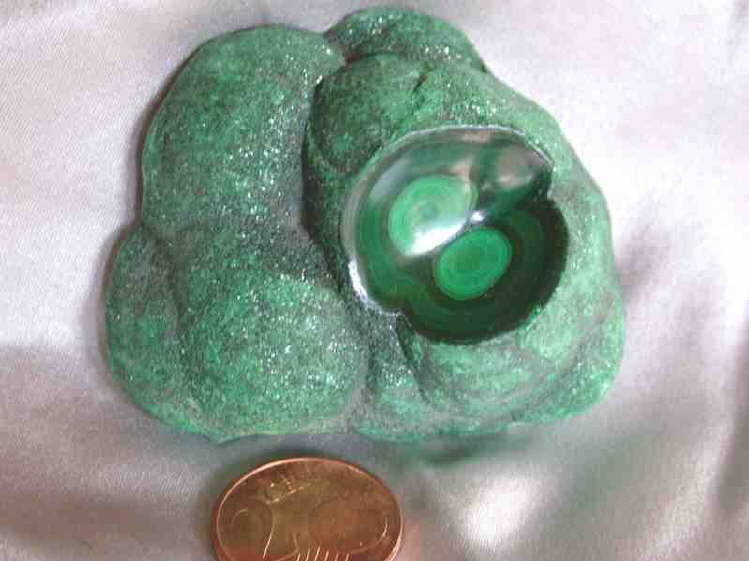 Massiv-knolliger Malchit, gebändert, stellenweise angeschliffen und poliert