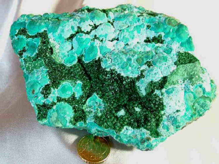 Malachit-Stufe begleitet von Azurit und Chrysokoll auf Matrix